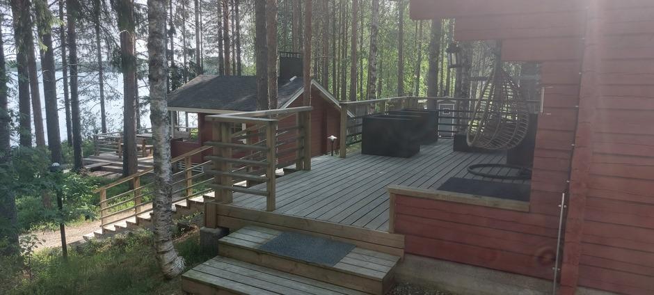 Rannassa on myös laituri sekä soutuvene, joka on mökin asukkaiden käytössä. Pelastusliivit tuotava itse mukana.
